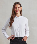 Classic banded ‘Grandad’ collar with top button fastening. Double-button cuff and sleeve guard. Bust, back darts and a curved hem. Pearlised buttons. BSCI certified. SEDEX certified. WRAP certified.