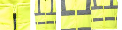 Certified EN ISO 20471:2013+A1:2016. RIS-3279-TOM ISSUE 1:2016 (Orange only). HV Orange & HV Yellow - Class 2. Two-Colour - Class 1. Solid Colours - Non Certified. Full front tear and release fastening. Over shoulder and around body reflective tape.