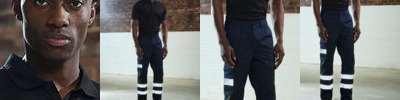 Hard-wearing polycotton fabric with WR finish. Durable nylon overlay panels offer extra protection from sharp objects. Reinforced triple stitched seams and crotch.