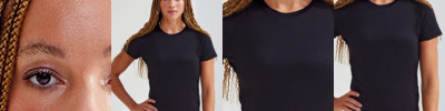 Wicking fabric. Sleeves are melange effect. Stretch. Crew neck. Short sleeve. Lightweight. Twin-needle stitching on hem and arms.